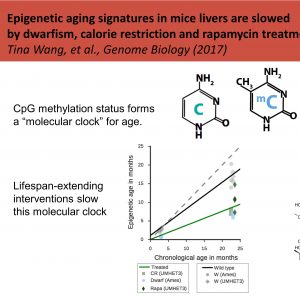 Epigenetic aging. In 2013 we showed that large parts of the methylome are remodeled with age, a process that is accelerated by disease and slowed in certain genotypes and in women versus men. These findings led to the first “epigenetic clock” model for predicting rate of biological aging (Hannum et al. Cell. 2013).